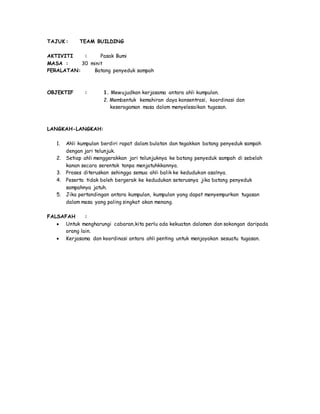 Contoh aktiviti team building outdoor. Contoh kertas kerja team building. Modul aktiviti komunikasi 1 2 hala.
